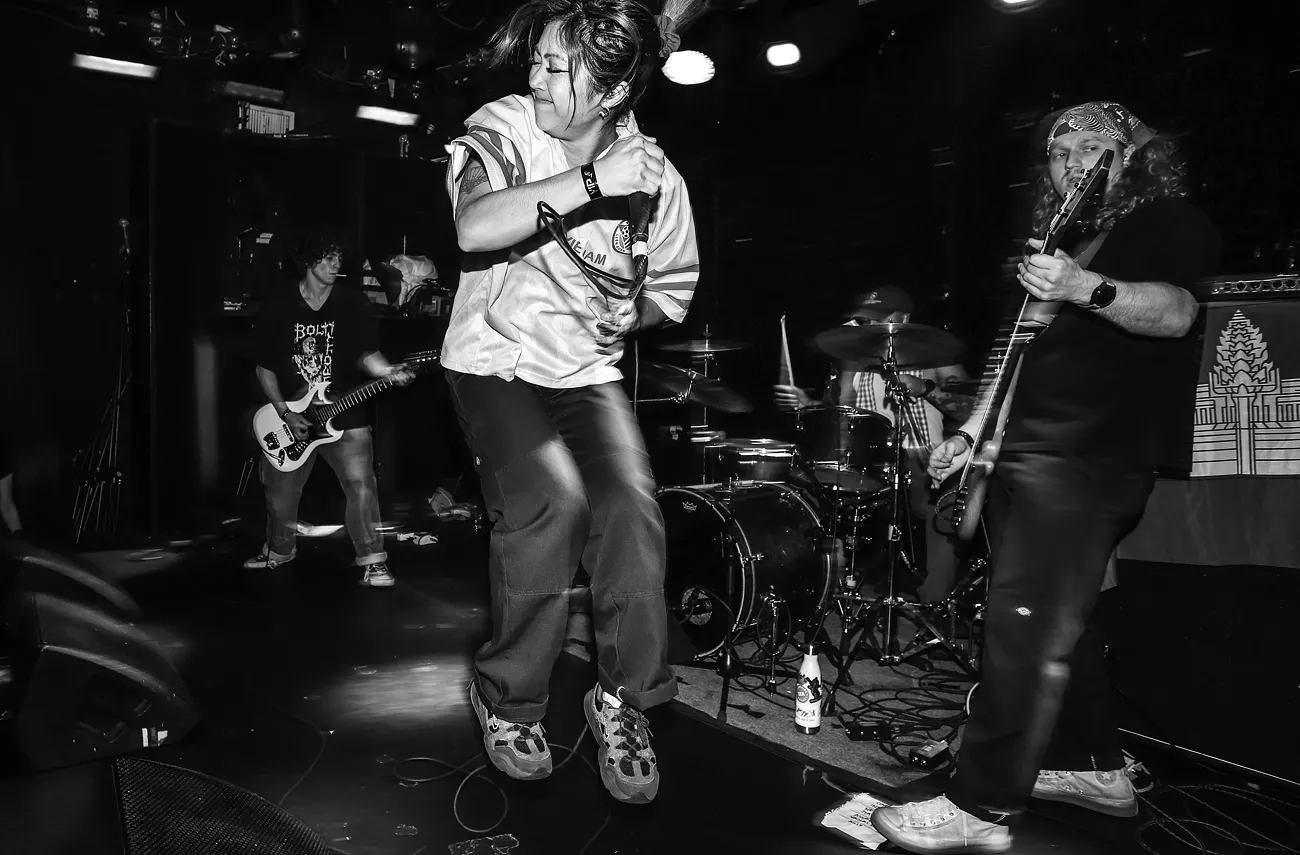The act was MÄSSGRIEF, another Seattle band led by a Cambodian frontman who thrashed about, sending waves into the crowd, sometimes collapsing to his knees as he cut up a riff. Suddenly, otherwise introverted-looking dudes on the peripherals started throwing kicks and punches to no one in particular, sometimes catching a target. I got why I was graciously placed in the corner. And while I was a stranger to the scene, I wasn’t a stranger to the message. My head bopped in concert with the drums, my face was scrunched up in a thizz face fashion. At points, I could feel myself tearing up, not because I heard a sensitive line (I couldn’t really hear shit at that point), but because I could feel the emotions in the performance in a tangible way, like when you can taste every ingredient in a well-made dish. Each song left me out of breath but eager for more.