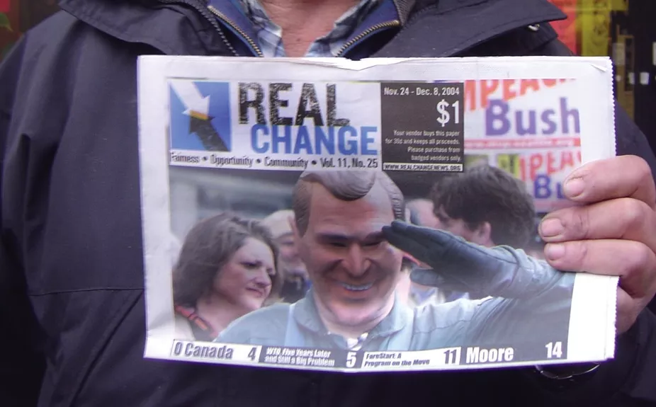 Most of Real Change’s self-employed vendors, who buy the paper for $0.60 and make a $1.40 profit from each $2 sale, are homeless or formerly homeless. Selling the paper on the street is a way for vendors, who often struggle to break into the wider job market, to make money.