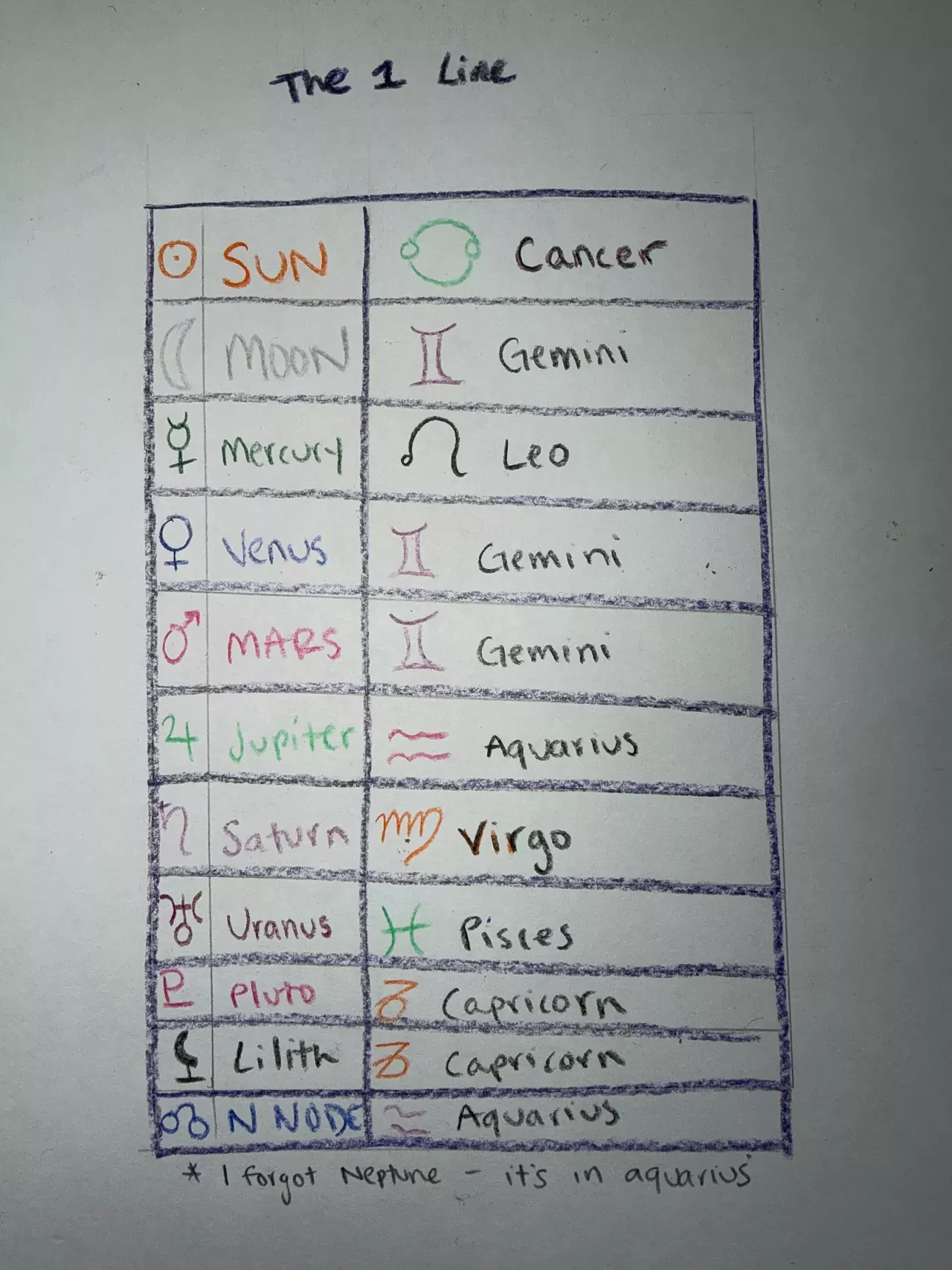 The 1 Line on the other hand—Cancer Mommy, according to my SIL— “loves and hates herself ad nauseum with all that prominent Gemini. And though she will try to scream (Mercury in Leo) it comes off more like little volcano spit ups than anything because where’s the rest of the fire in her chart?? That’s right. NOWHERE.”
